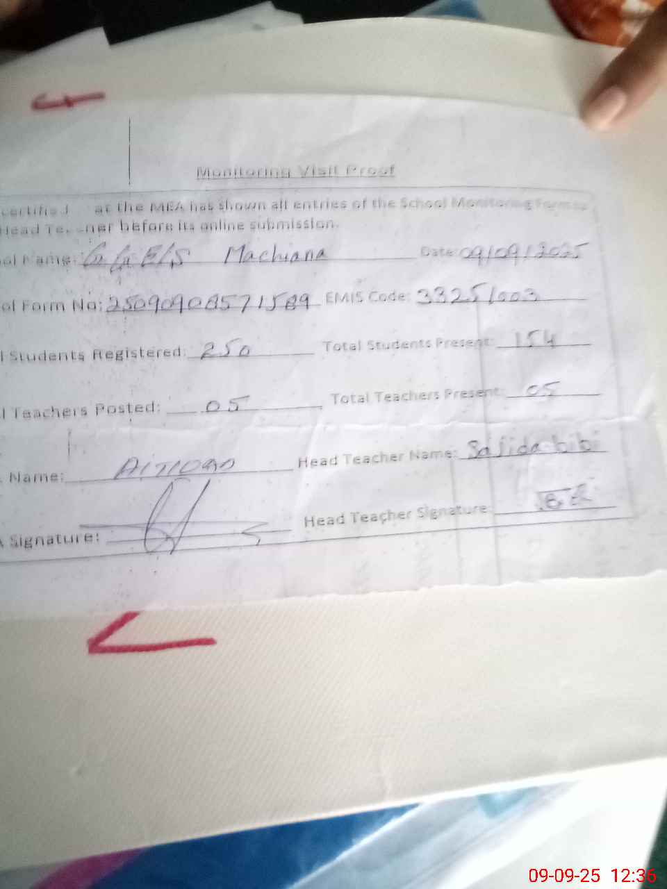 | EMIS Code: 33251003 | Name of School: GGES MACHYANA | |||