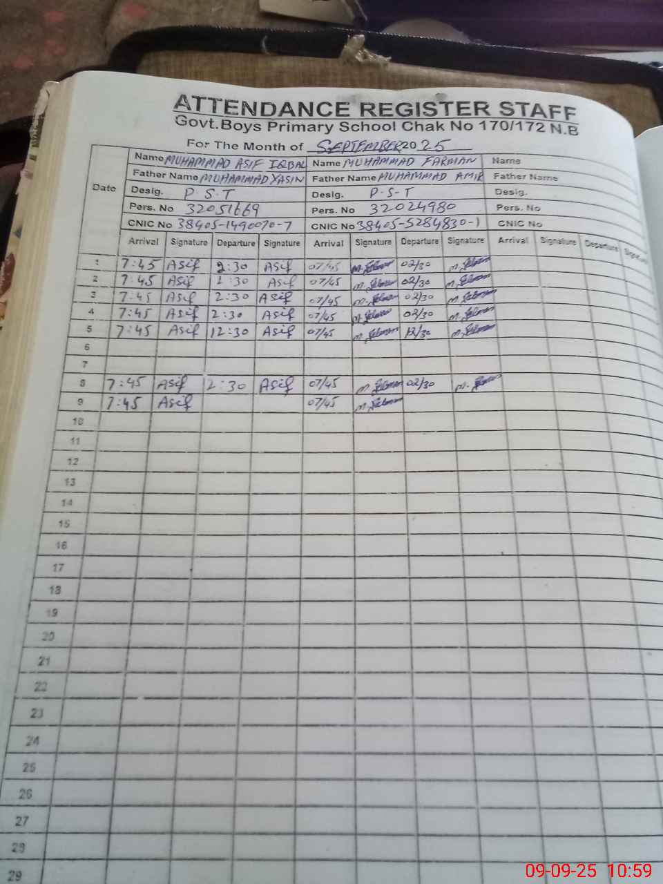 | Name: Mu**** As**** Iq**** Designation: (School Headmaster's/Headmistress's) PST Phone/Cell Number: 03**** |