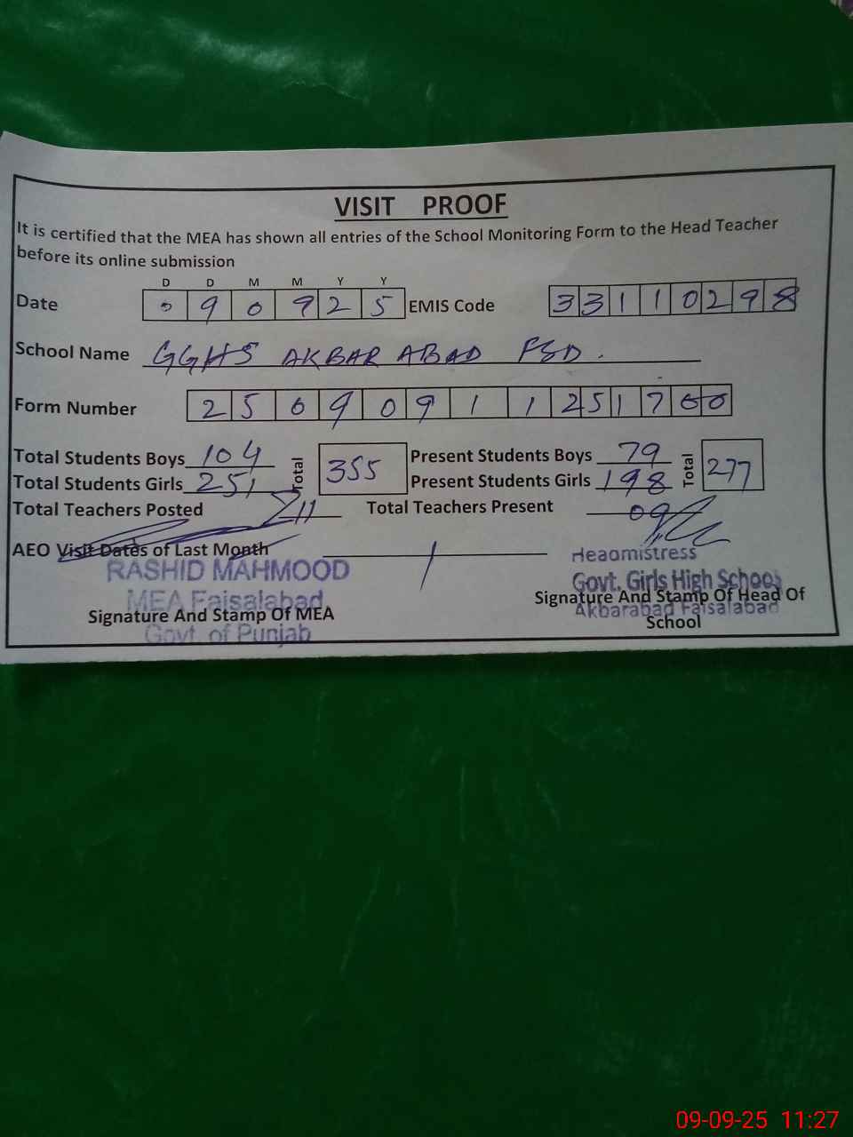 | EMIS Code: 33110298 | Name of School: GGHS AKBAR ABAD FSD | |||