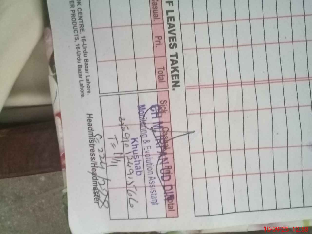| Name: FA**** AH**** Designation: (School Headmaster's/Headmistress's) SSE Phone/Cell Number: 03**** |