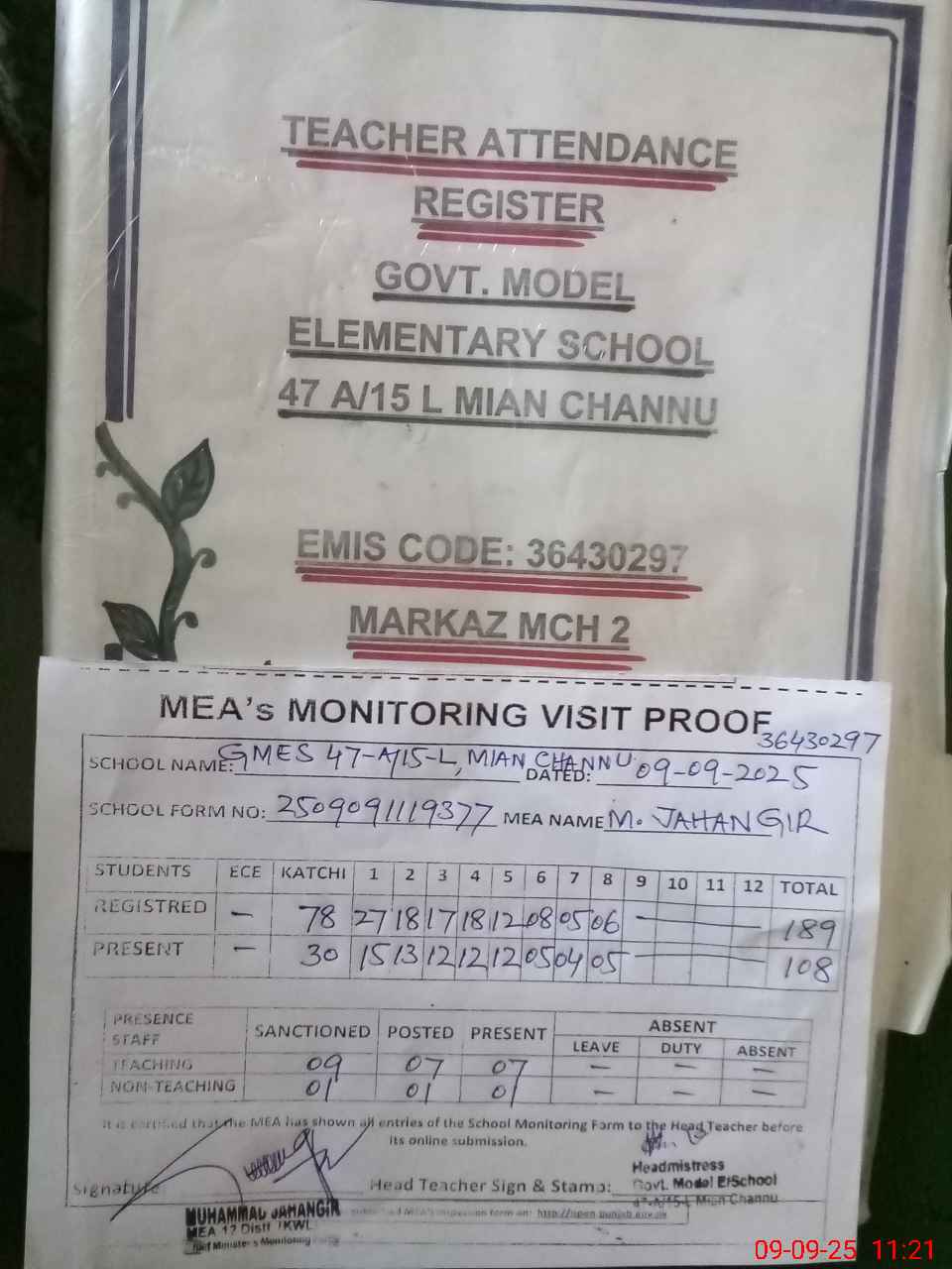 | EMIS Code: 36430297 | Name of School: GMES 47-A/15-L, MIAN CHANNU | |||