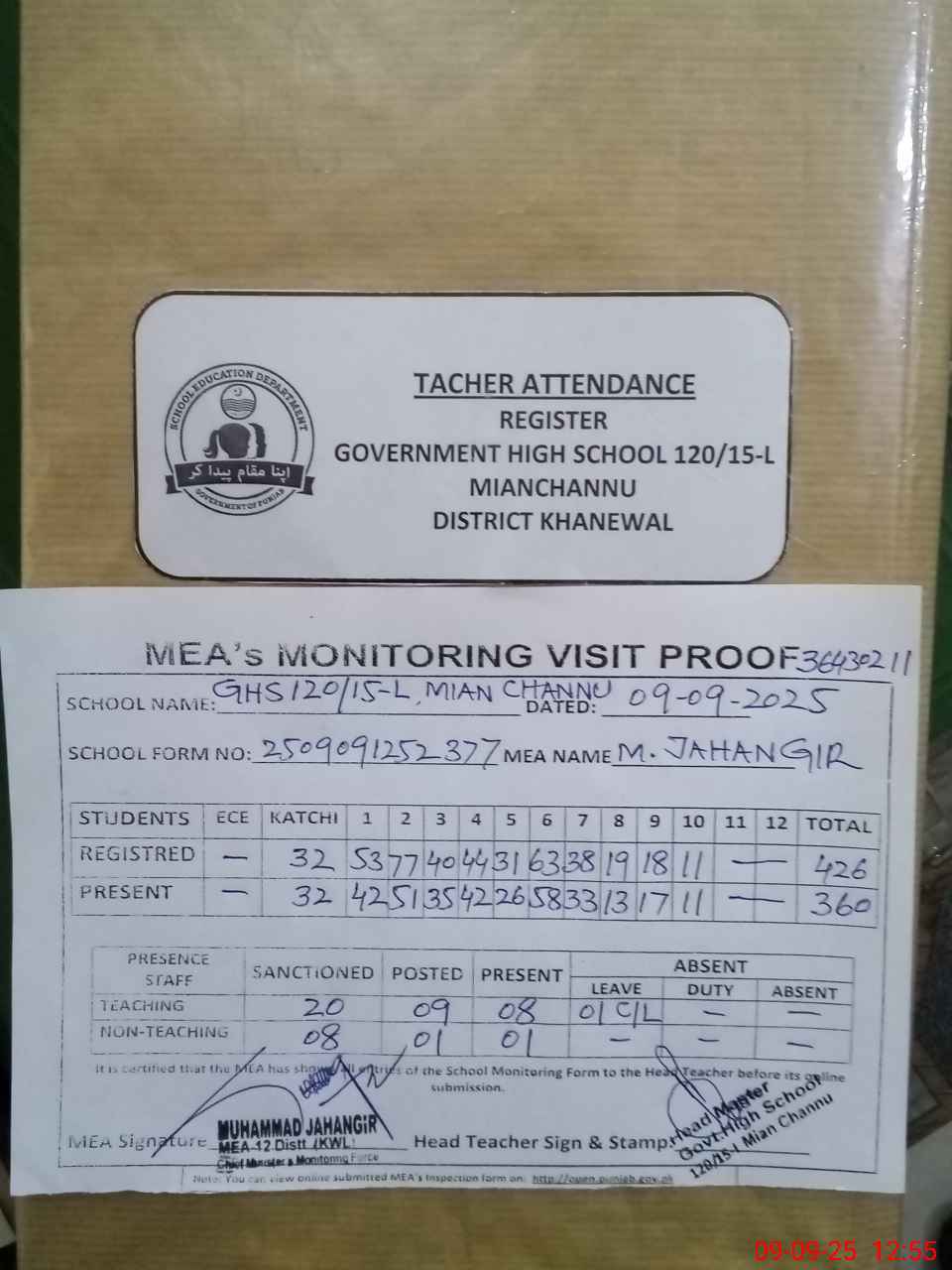 | EMIS Code: 36430211 | Name of School: GHS 120/15-L, MIAN CHANNU | |||