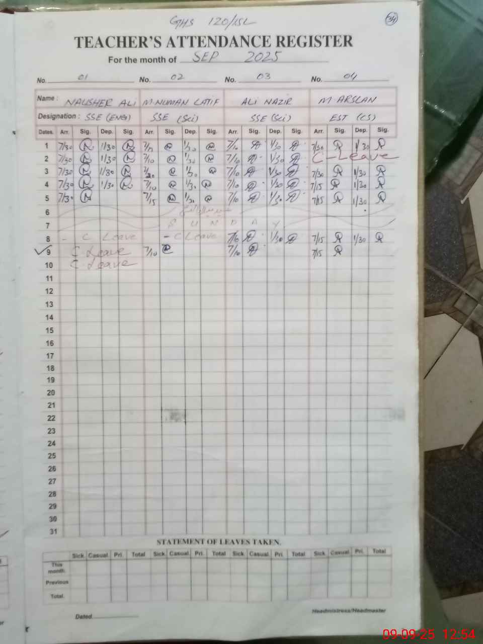 | Name: SY**** AT**** HU**** Designation: (School Headmaster's/Headmistress's) SST SC HM Phone/Cell Number: 03**** |