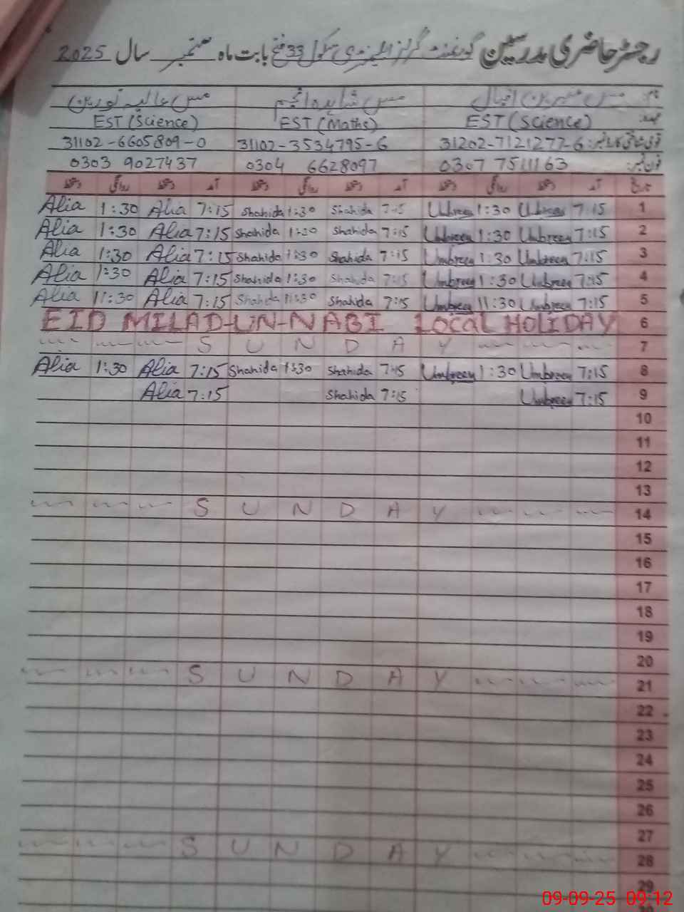 | Name: Um**** Iq**** Designation: (School Headmaster's/Headmistress's) EST Sci Phone/Cell Number: 03**** |