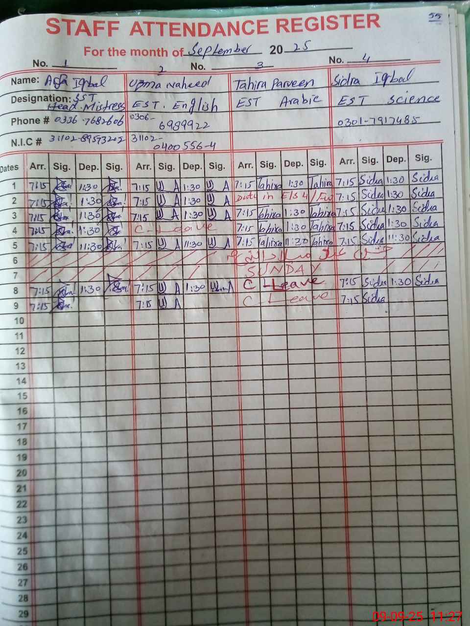 | Name: Ar**** Iq**** Designation: (School Headmaster's/Headmistress's) S.S.T Phone/Cell Number: 03**** |