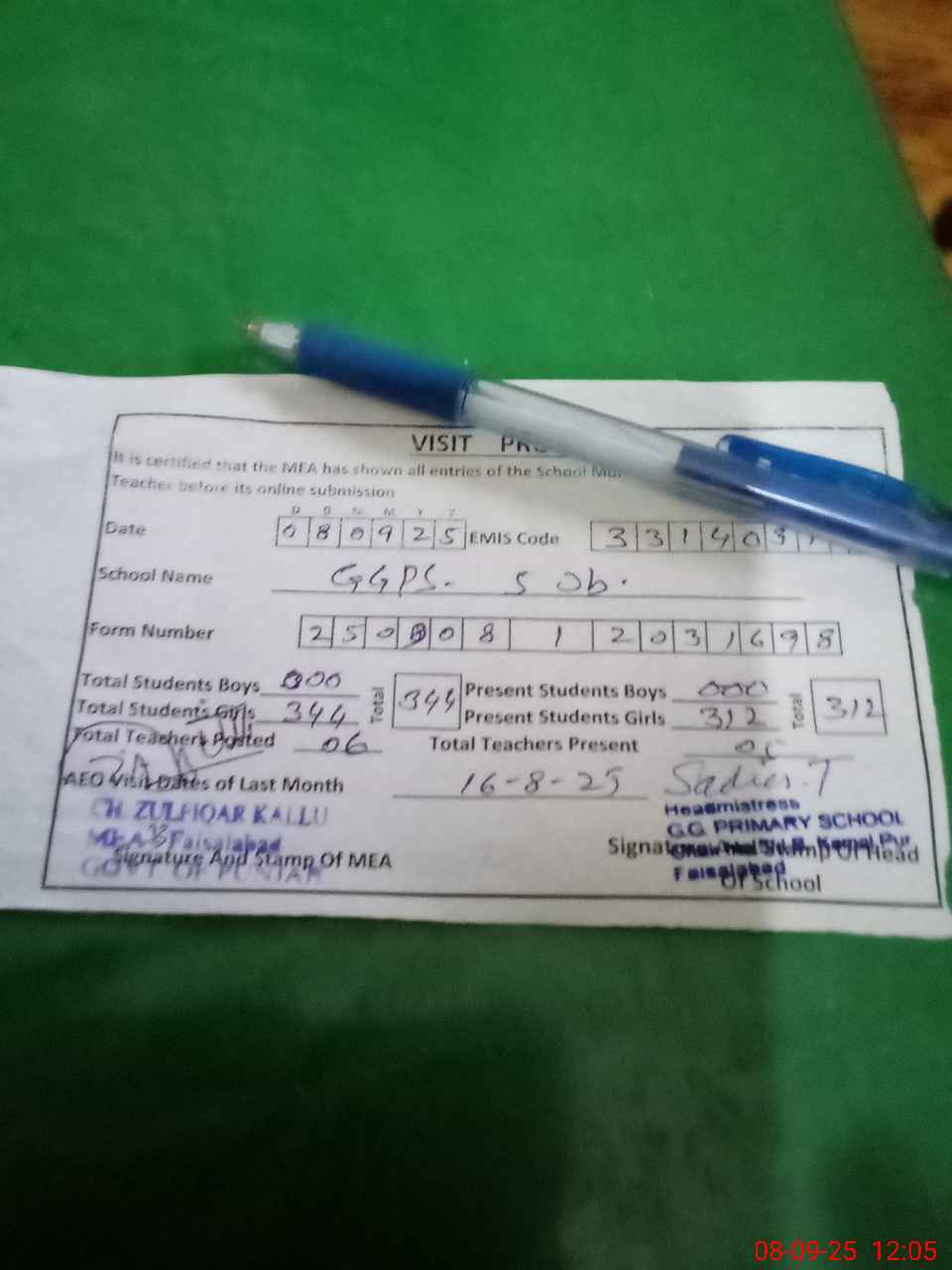 | Attendance Register | Head Teacher | MEA with School | Visit Proof |
