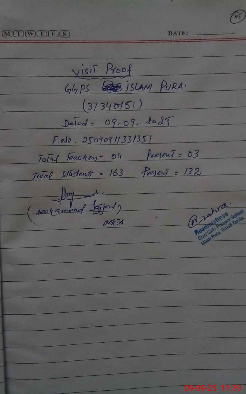 | EMIS Code: 37340151 | Name of School: GGPS ISLAM PURA | |||