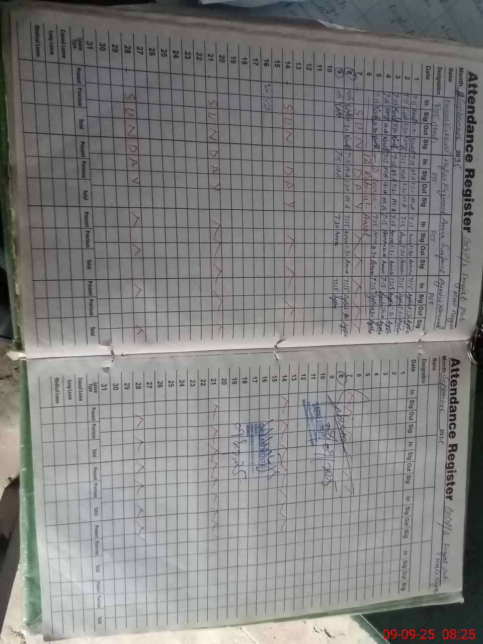 | CNIC | Full Name | Designation | R/C | Absence During Last Calender Month |