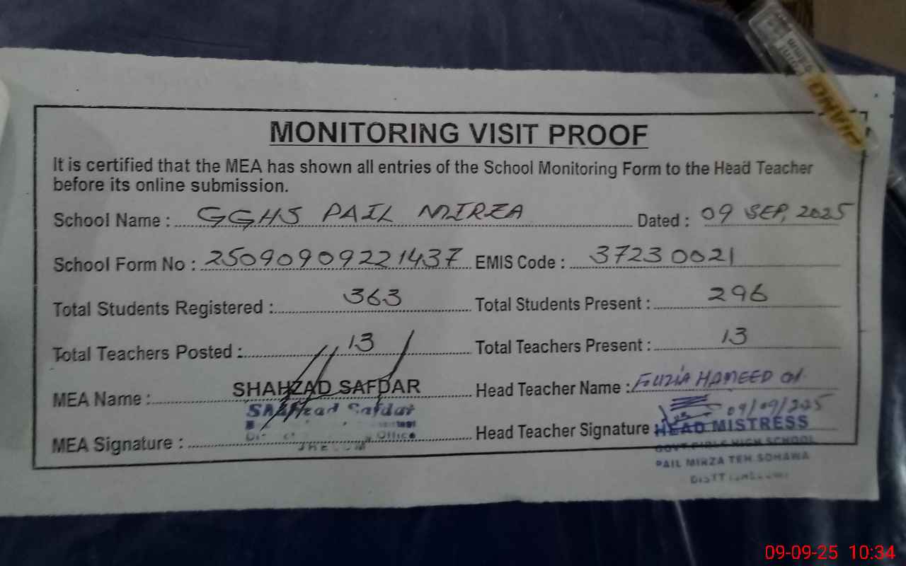 | EMIS Code: 37230021 | Name of School: GGHS PAIL MIRZA | |||