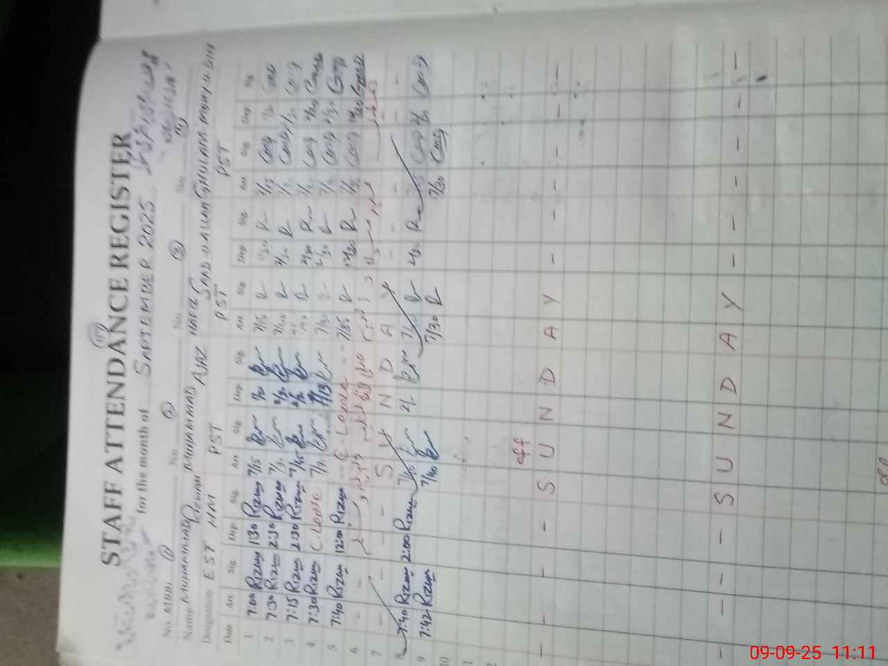 | Monitoring Date: 09-09-2025 | Start Time: 09-09-2025 11:11 AM | End Time: 09-09-2025 11:35 AM | Name of MEA: MA**** AH**** | |
