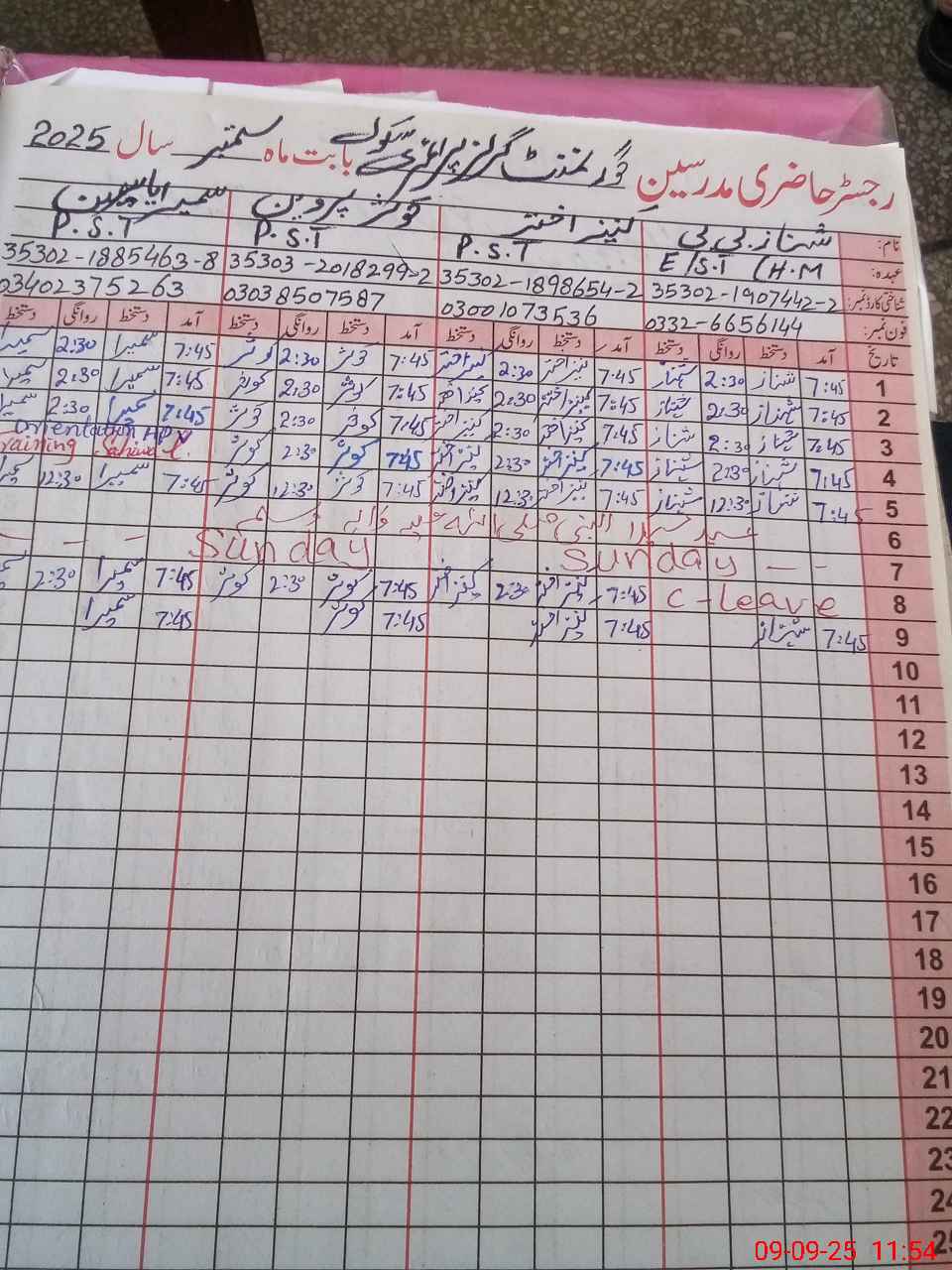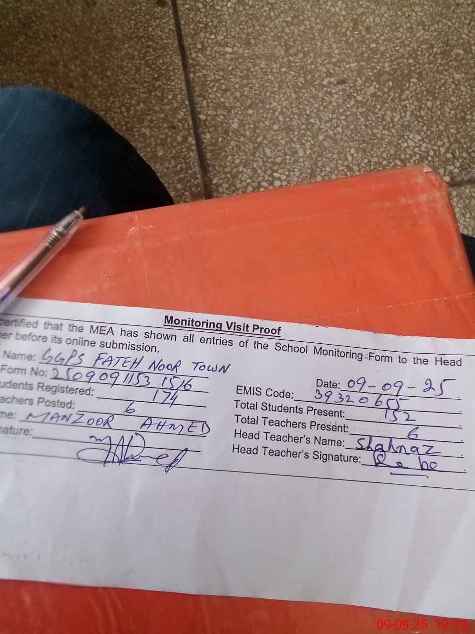 | EMIS Code: 39320655 | Name of School: GGPS FATEH NOOR TOWN | |||