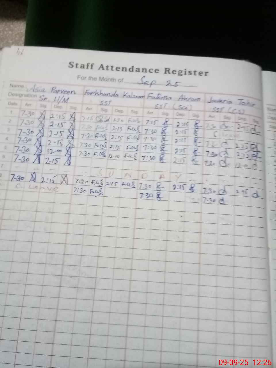| Leave | Duty | Absent | Maternity | Medical | Ex- Pak |