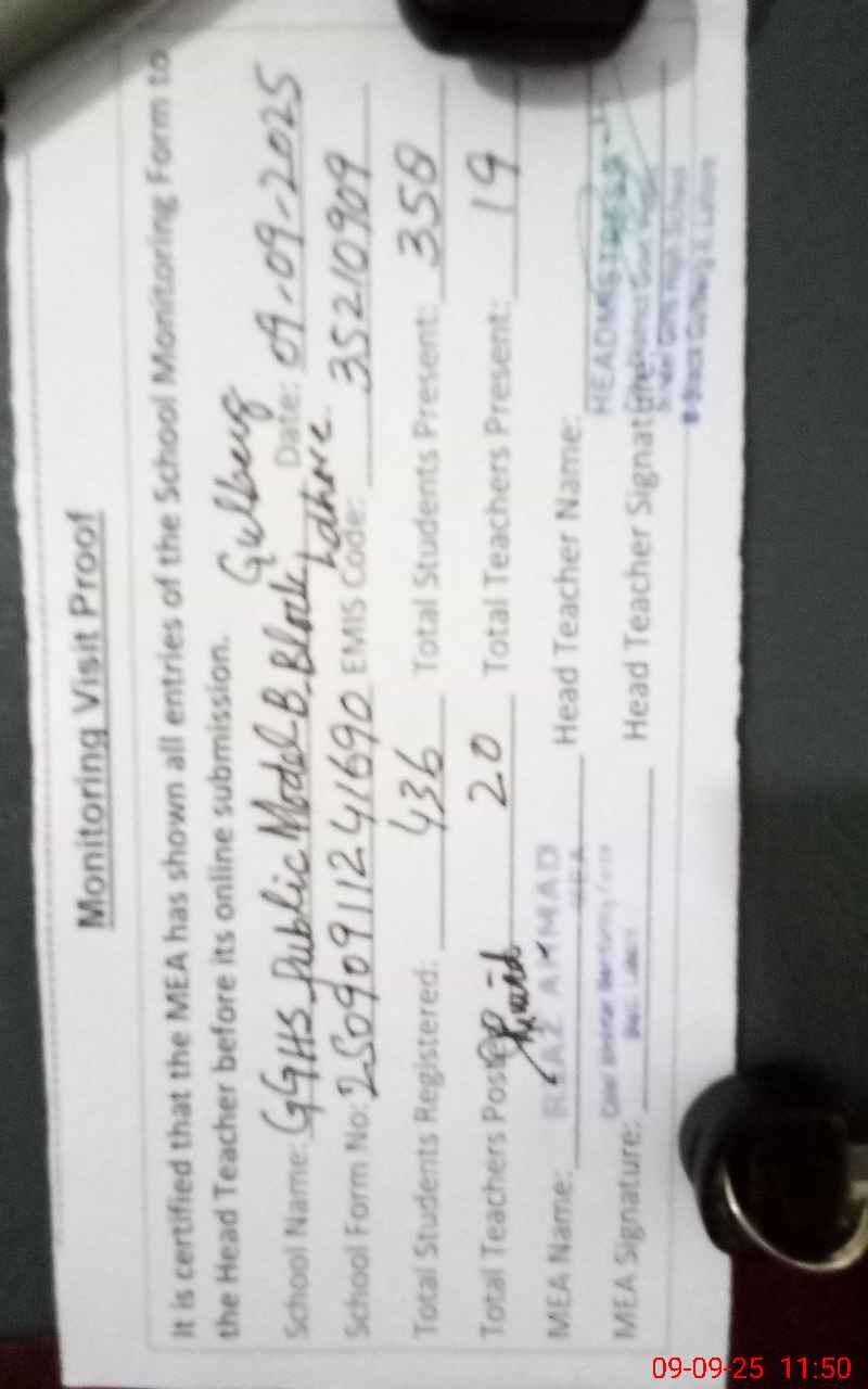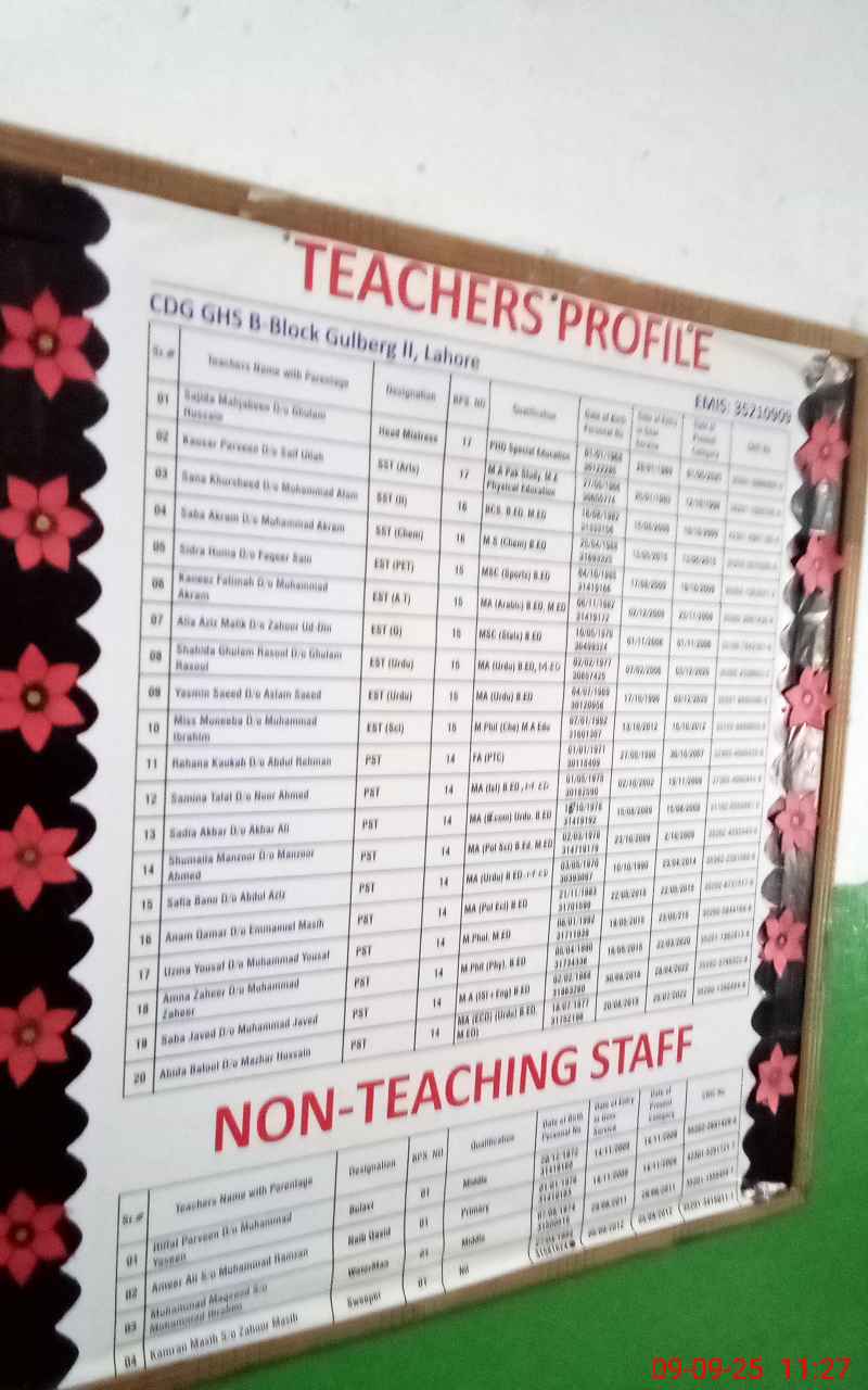 | EMIS Code: 35210909 | Name of School: GGHS PUBLIC MODEL BLOCK-B GULBERG-II (EX-MCL) | |||