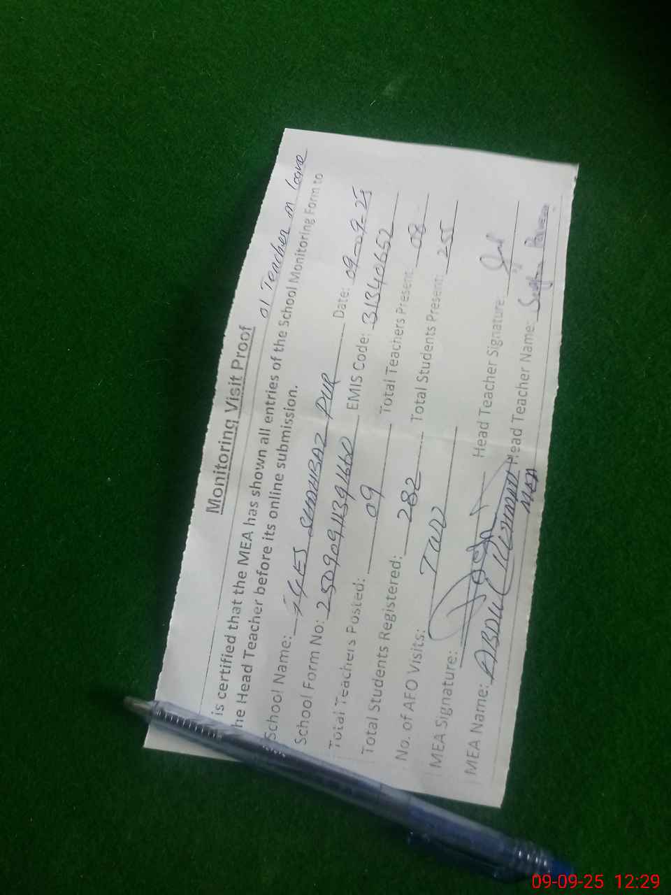 | Certified that this School was Inspected by the Undersigned MEA/DMO Today and the Information Stated Above is as Per Record. | |||||