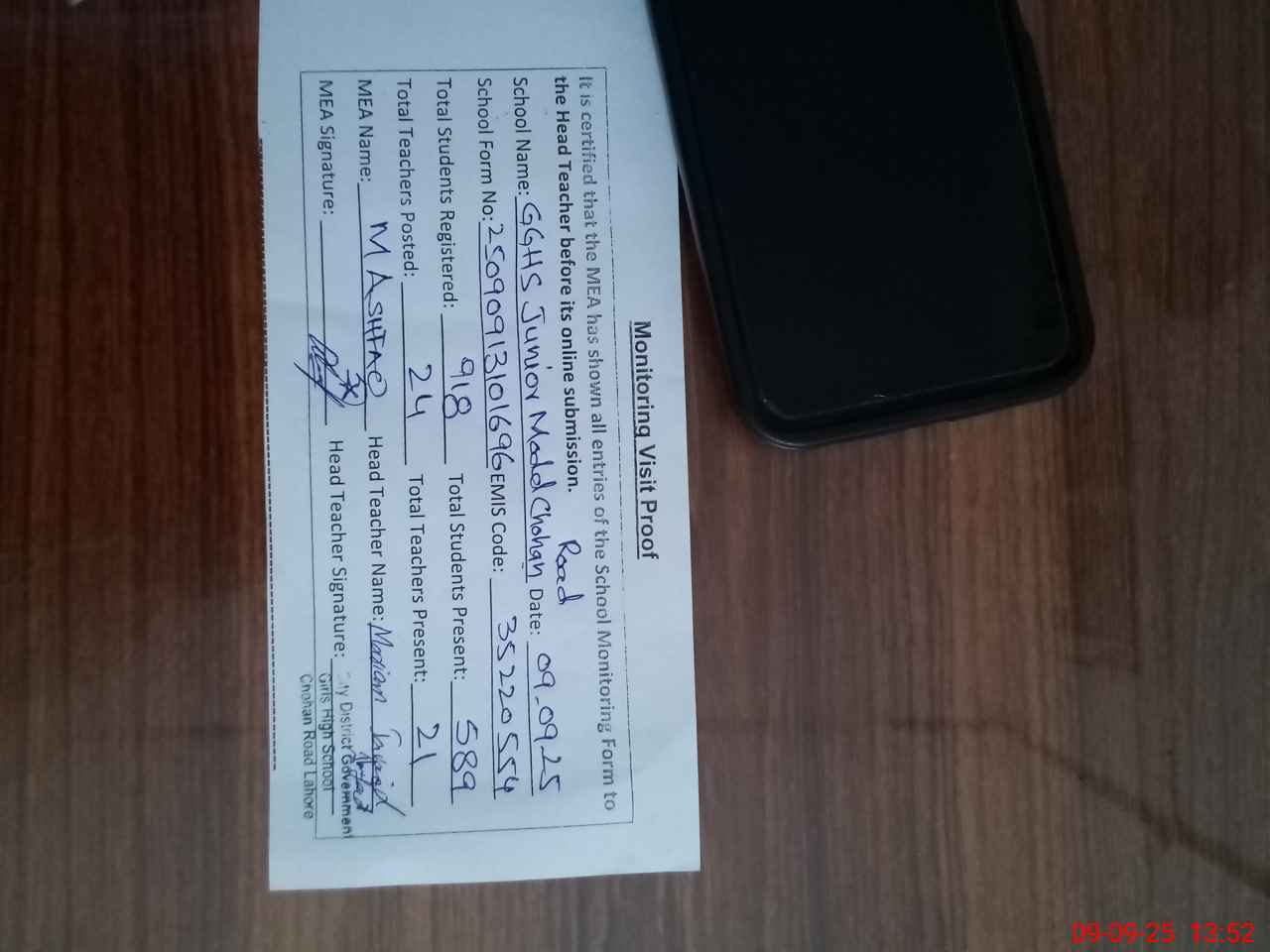 | EMIS Code: 35220554 | Name of School: GGHS JUNIOR MODEL CHOHAN ROAD EX-MCL (Newly Upgraded) | |||