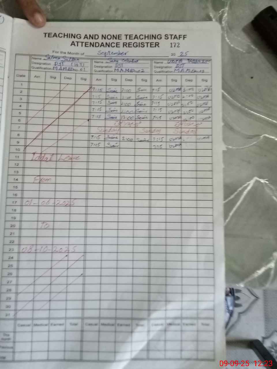 | Name: Sa**** Su**** Designation: (School Headmaster's/Headmistress's) Head Mistress Phone/Cell Number: 03**** |