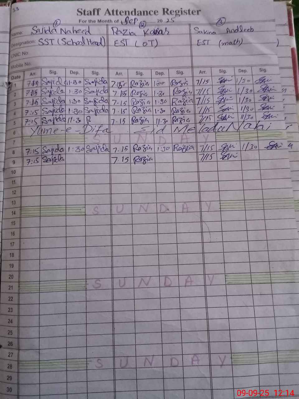 | Name: SA**** NA**** Designation: (School Headmaster's/Headmistress's) Incharge Head SST G Phone/Cell Number: 03**** |