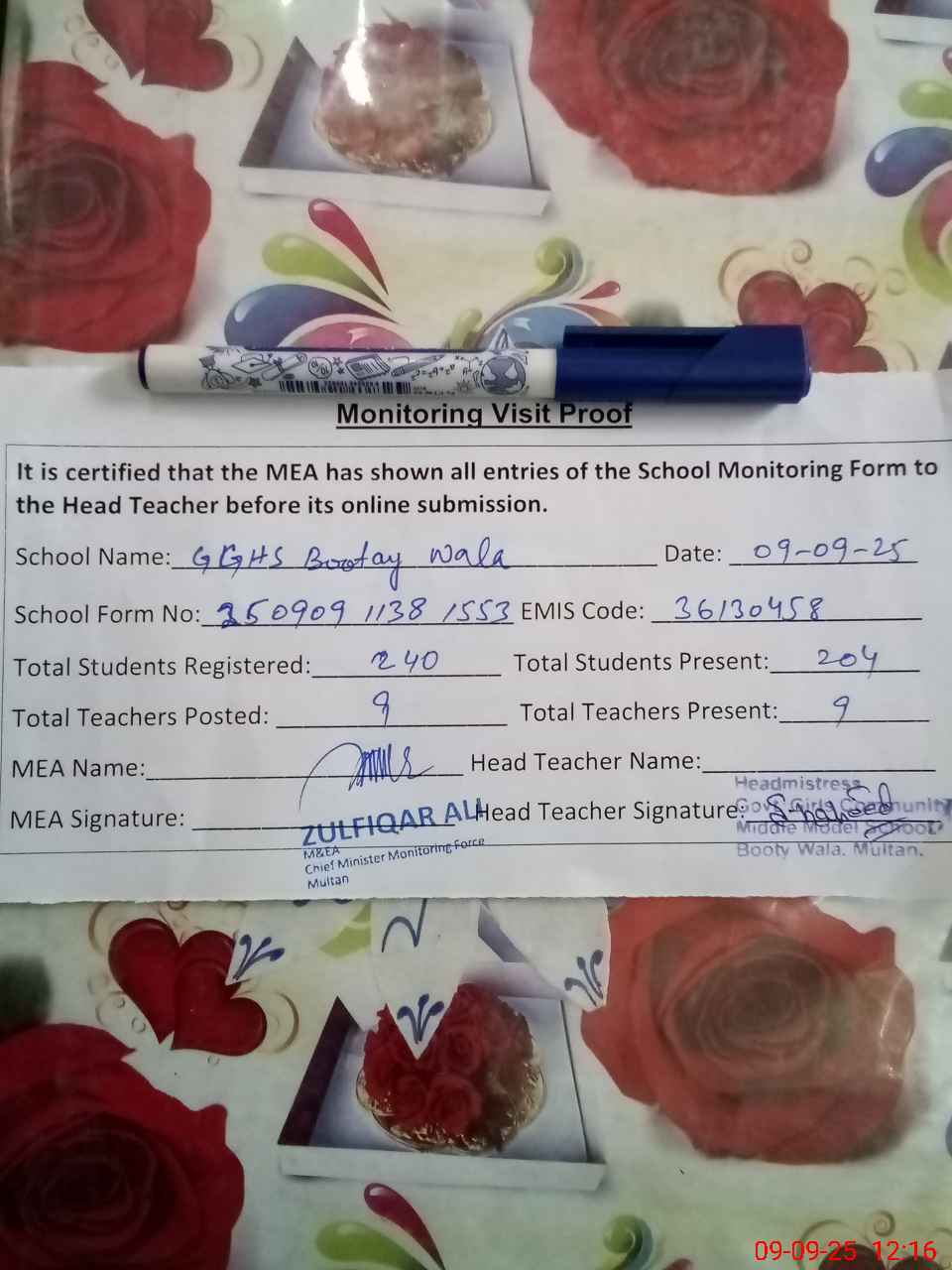 | EMIS Code: 36130458 | Name of School: GGHS BOTAY WALA MAKHDOOM RASHEED | |||