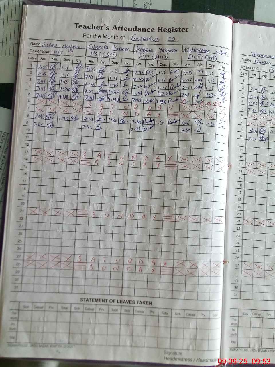 | Leave | Duty | Absent | Maternity | Medical | Ex- Pak |