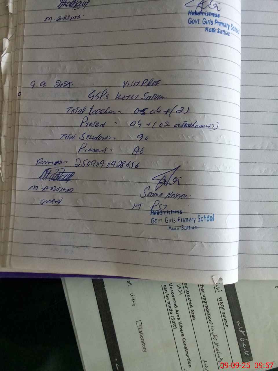 | Attendance Register | Head Teacher | MEA with School | Visit Proof |