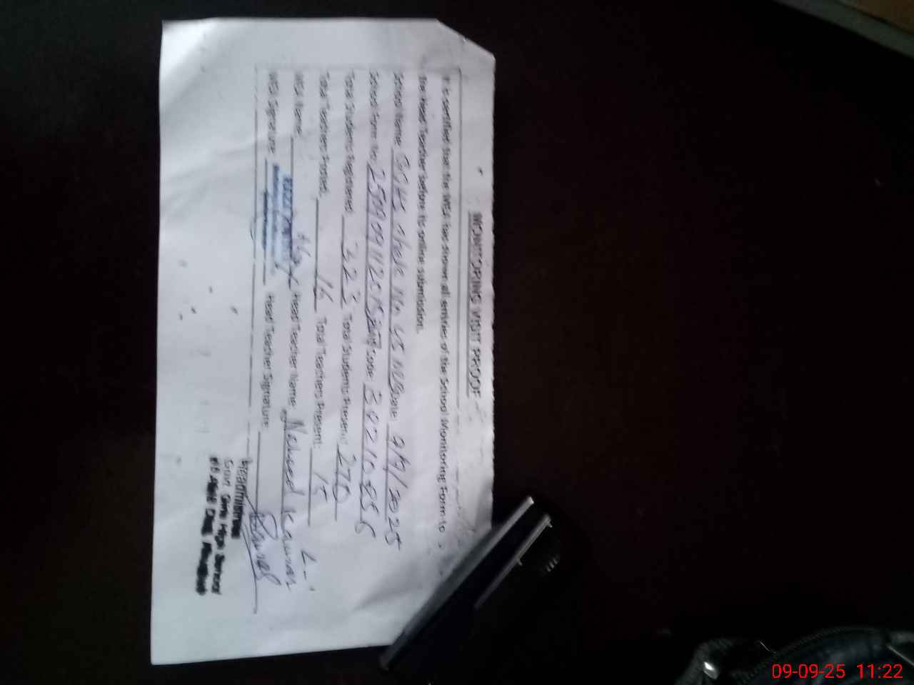 | Attendance Register | Head Teacher | MEA with School | Visit Proof |