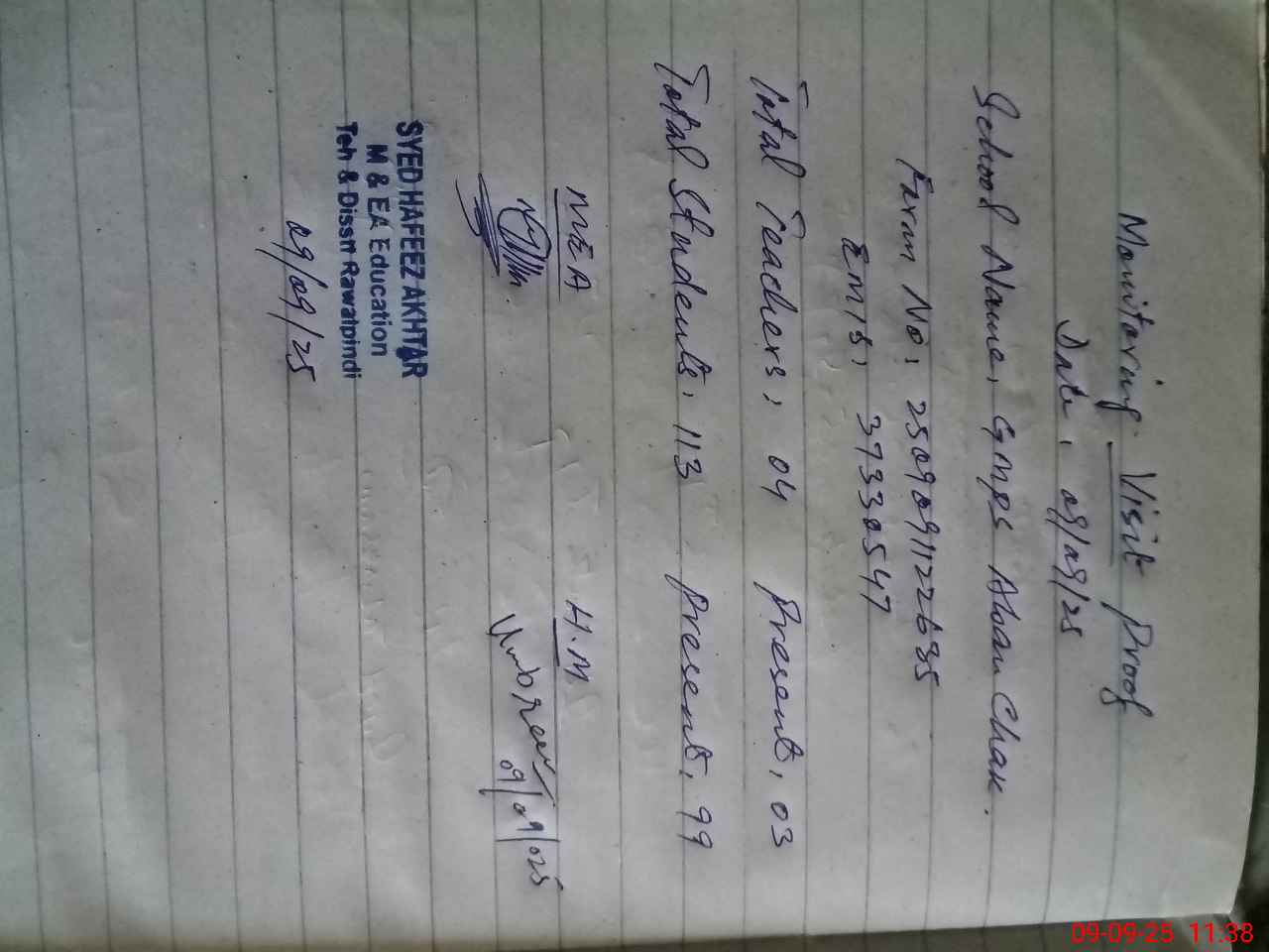 | Monitoring Date: 09-09-2025 | Start Time: 09-09-2025 11:11 AM | End Time: 09-09-2025 11:42 AM | Name of MEA: Sy**** Ha**** Ak**** | |