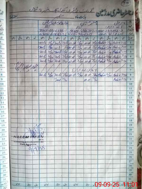 | Name: Ba**** Al**** Designation: (School Headmaster's/Headmistress's) PST Phone/Cell Number: 03**** |