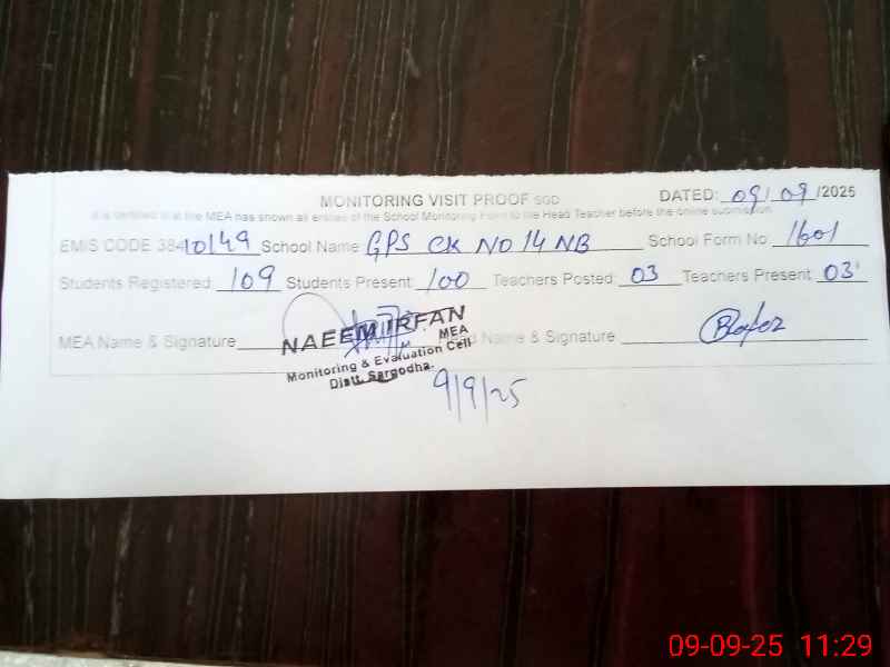 | EMIS Code: 38410149 | Name of School: GPS CHAK NO.14 NB | |||