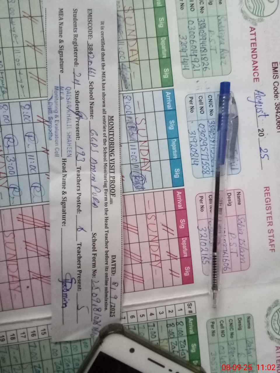 | Attendance Register | Head Teacher | MEA with School | Visit Proof |
