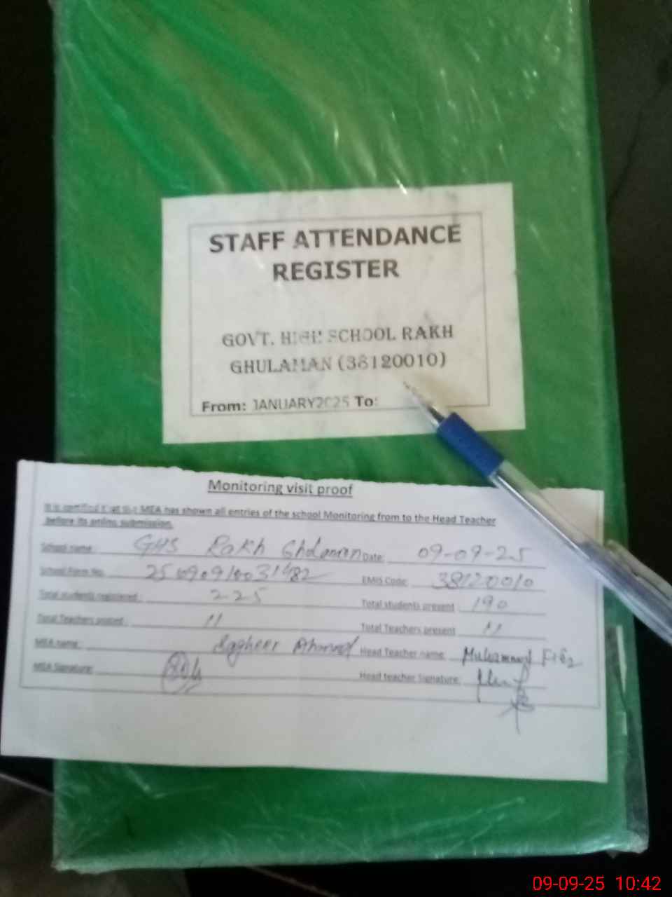 | EMIS Code: 38120010 | Name of School: GHS RAKH GHULAMAN | |||