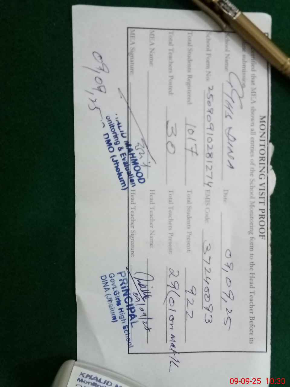| EMIS Code: 37240093 | Name of School: GGHS DINA | |||