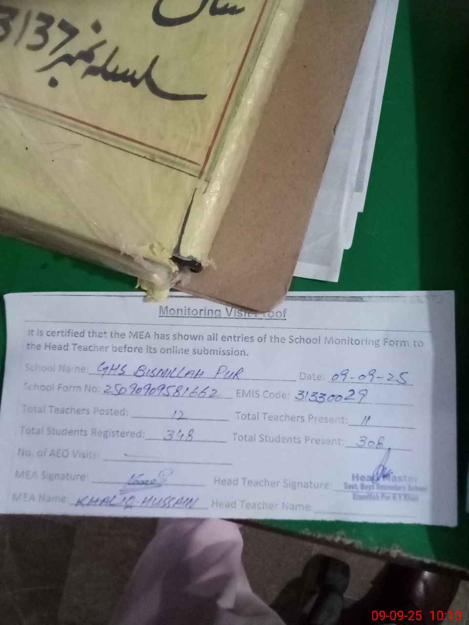 | EMIS Code: 31330029 | Name of School: GHS BISMILLAH PUR | |||