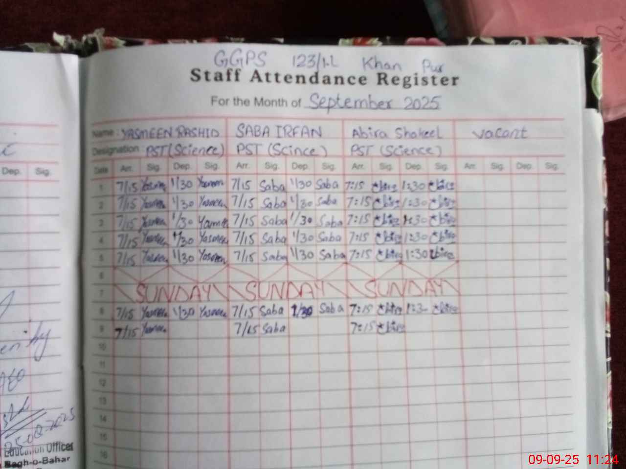 | CNIC | Full Name | Designation | R/C | Absence During Last Calender Month |