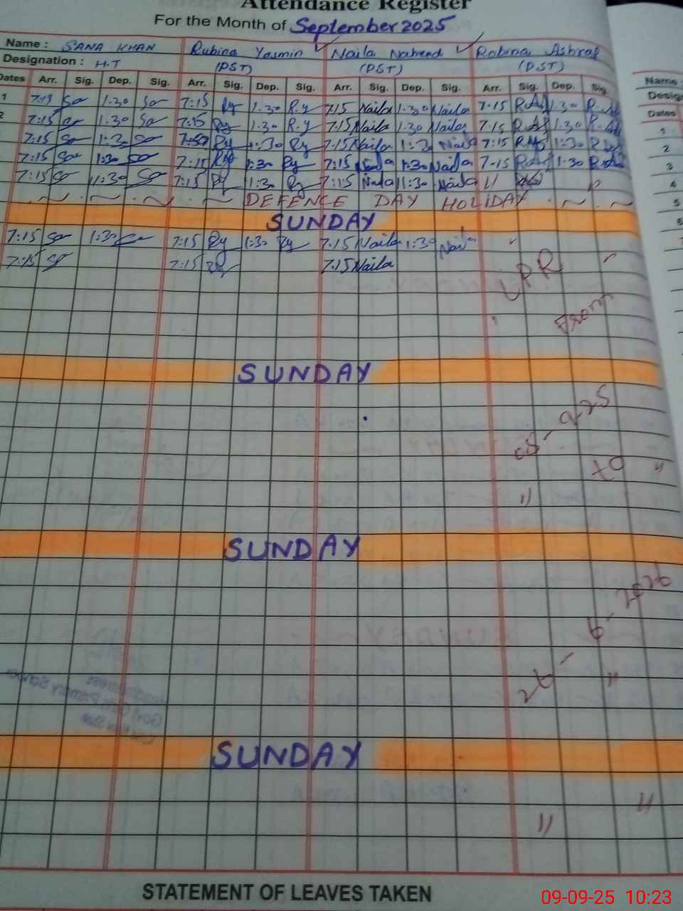 | CNIC | Full Name | Designation | R/C | Absence During Last Calender Month |