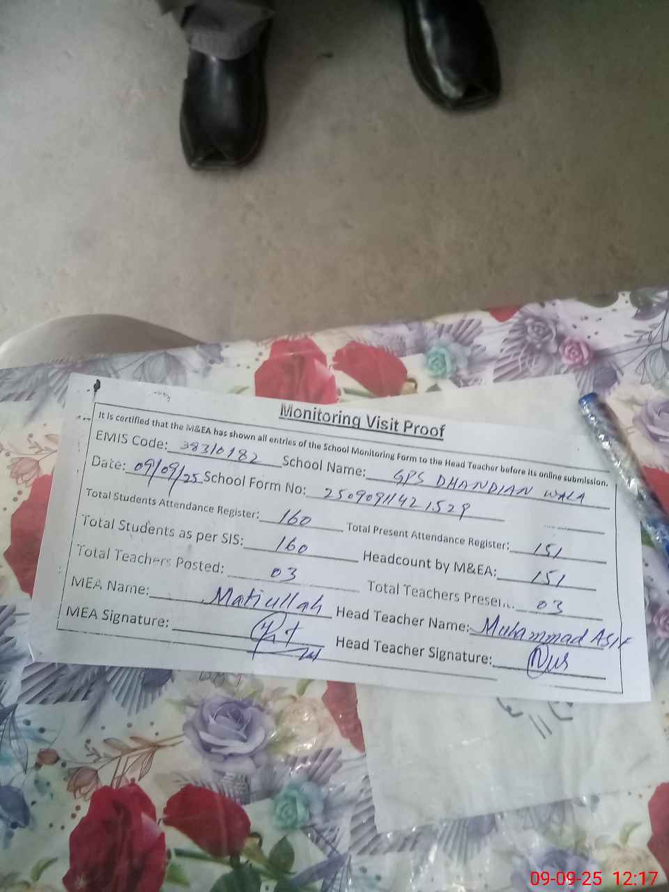 | EMIS Code: 38310182 | Name of School: GPS DHANDIAN WALA | |||