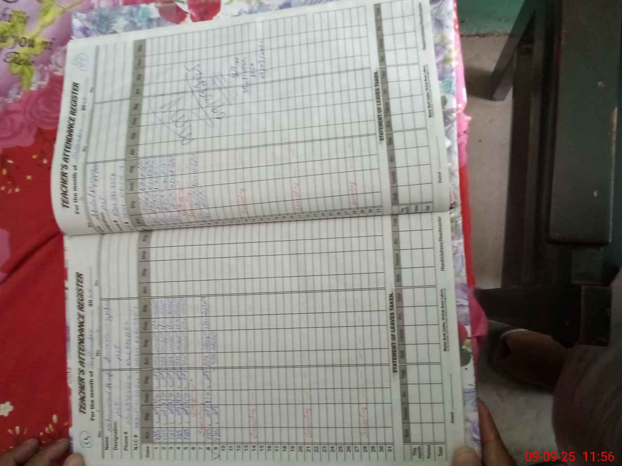 | Total no. of Classrooms: 5 No. of Classrooms Used for Teaching: 4 No. of Classrooms Storing Old Furniture, FTBs, etc: 0Comments if Any: Cash book not available of NSB |