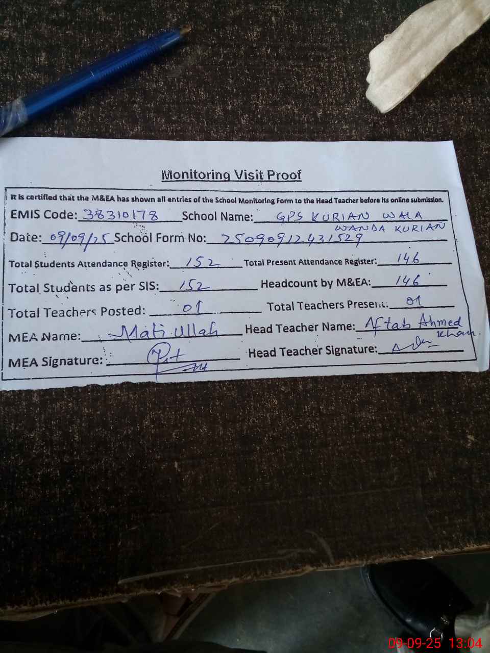 | EMIS Code: 38310178 | Name of School: GPS KURIAN WALA WANDHA KURIAN WALA | |||
