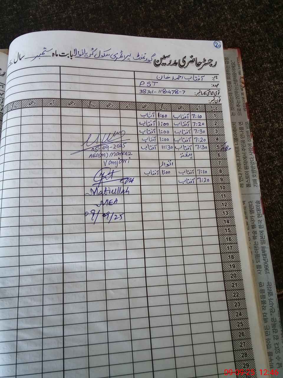 | Name: AF**** AH**** KH**** Designation: (School Headmaster's/Headmistress's) PST Phone/Cell Number: 03**** |