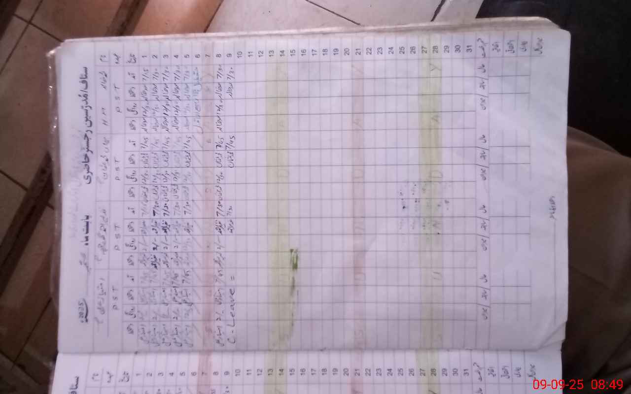 | CNIC | Full Name | Designation | R/C | Absence During Last Calender Month |