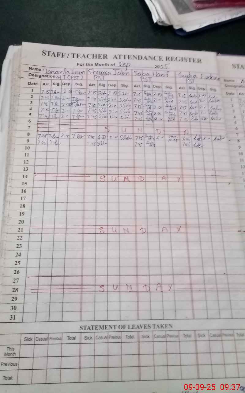 | Name: SA**** HA**** Designation: (School Headmaster's/Headmistress's) PST Phone/Cell Number: 03**** |