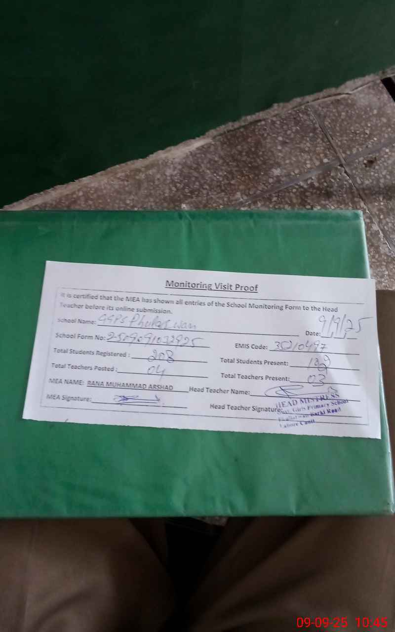 | EMIS Code: 35210497 | Name of School: GGPS PHULAR WAN | |||