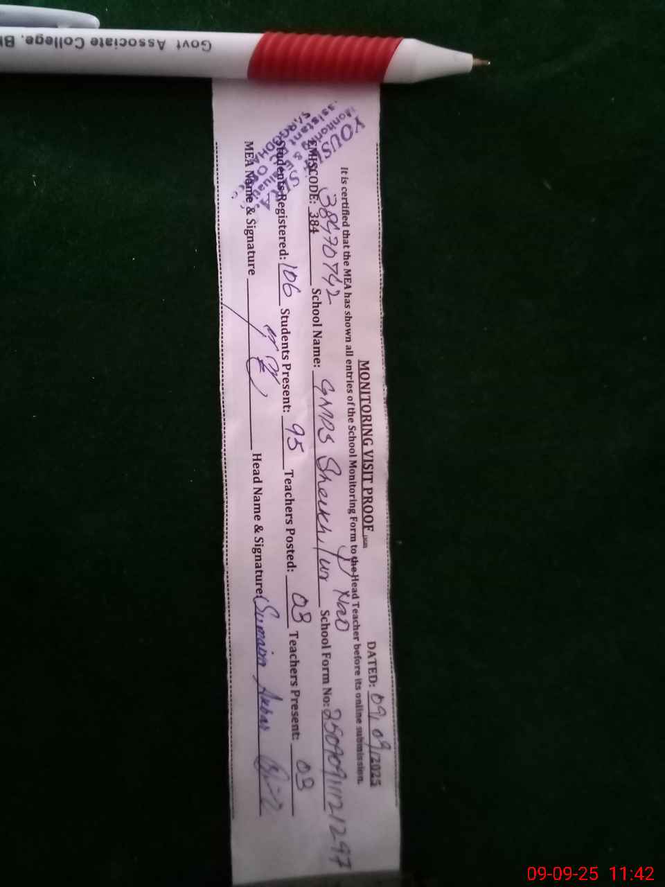| Certified that this School was Inspected by the Undersigned MEA/DMO Today and the Information Stated Above is as Per Record. | |||||