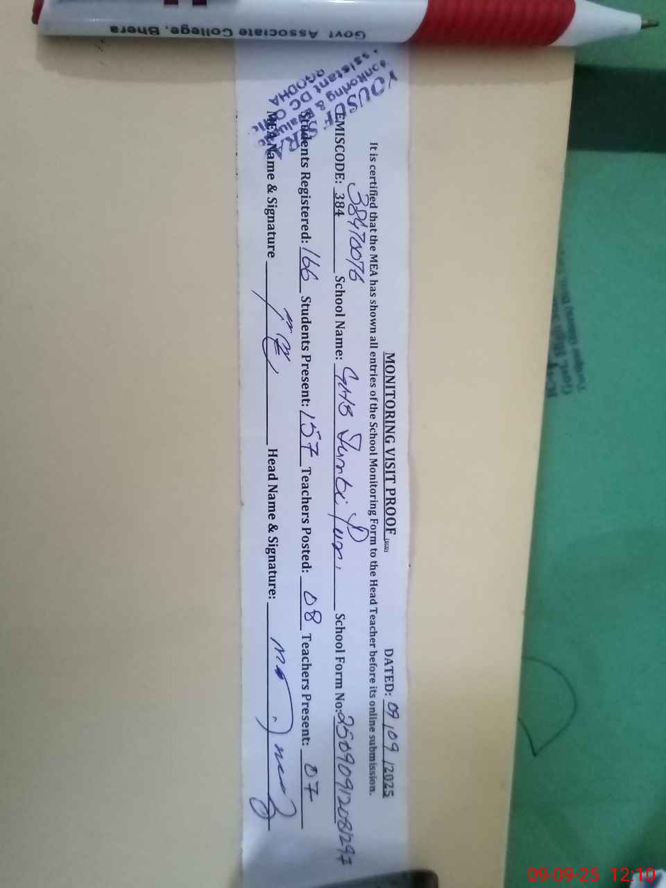 | Certified that this School was Inspected by the Undersigned MEA/DMO Today and the Information Stated Above is as Per Record. | |||||