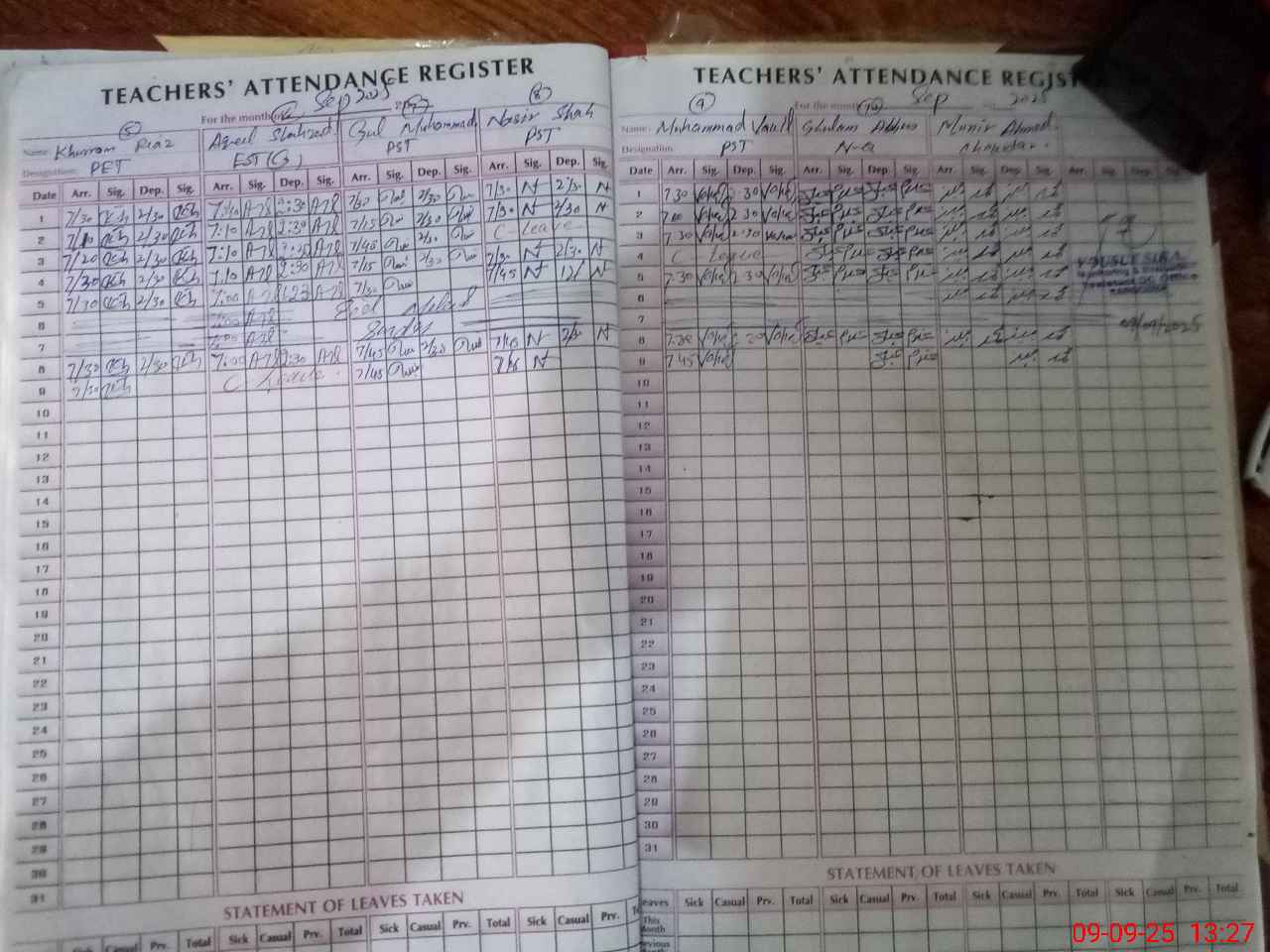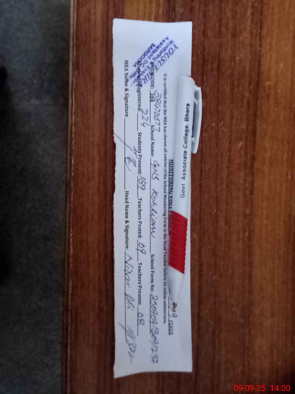 | Attendance Register | Head Teacher | MEA with School | Visit Proof |