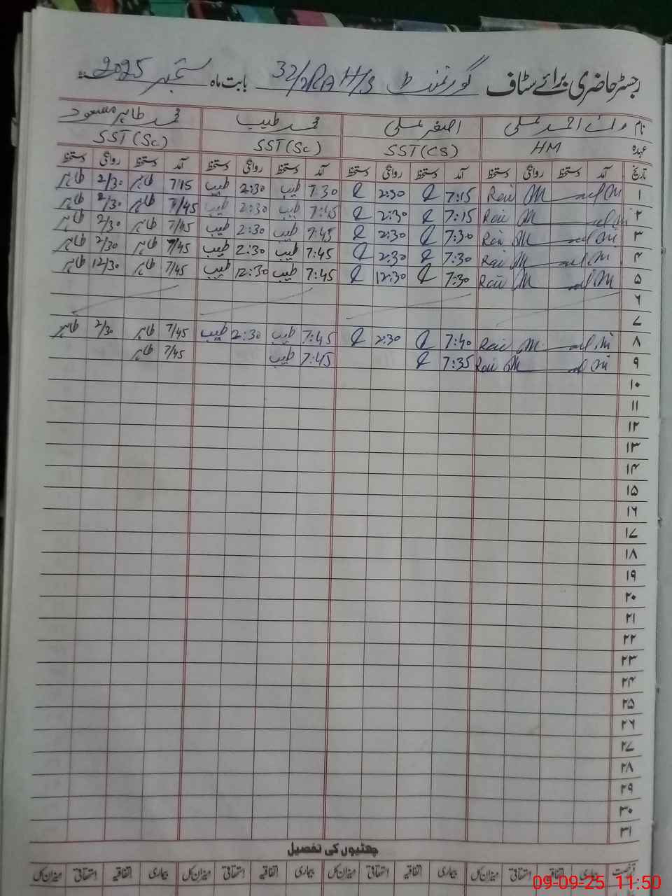 | CNIC | Full Name | Designation | R/C | Absence During Last Calender Month |