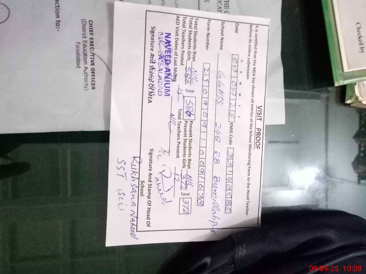 | Attendance Register | Head Teacher | MEA with School | Visit Proof |