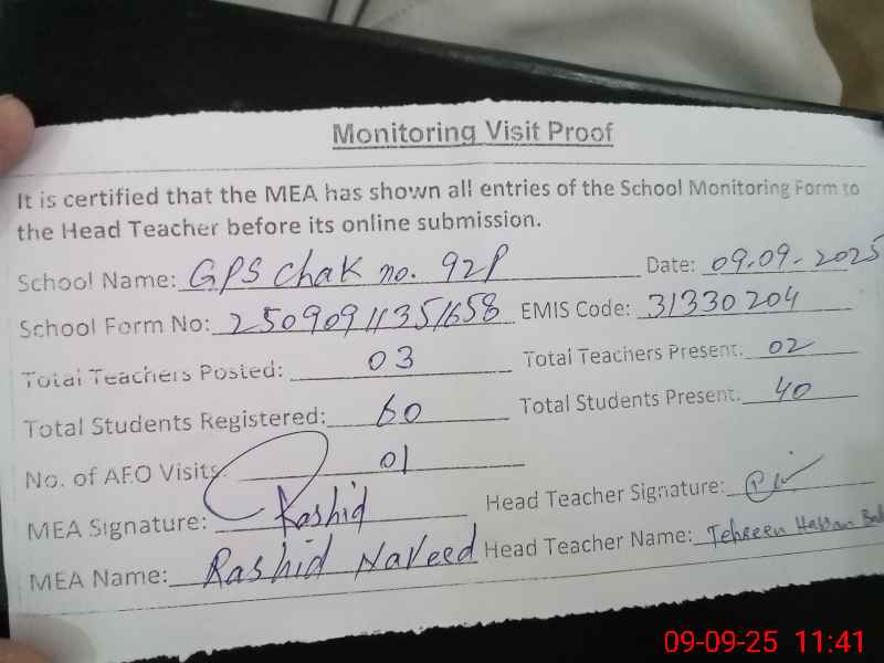 | EMIS Code: 31330204 | Name of School: GPS CHAK NO 92 P | |||