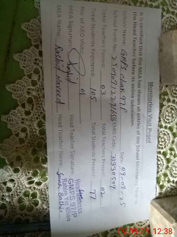 | EMIS Code: 31330509 | Name of School: GMPS CHAK 97/P | |||