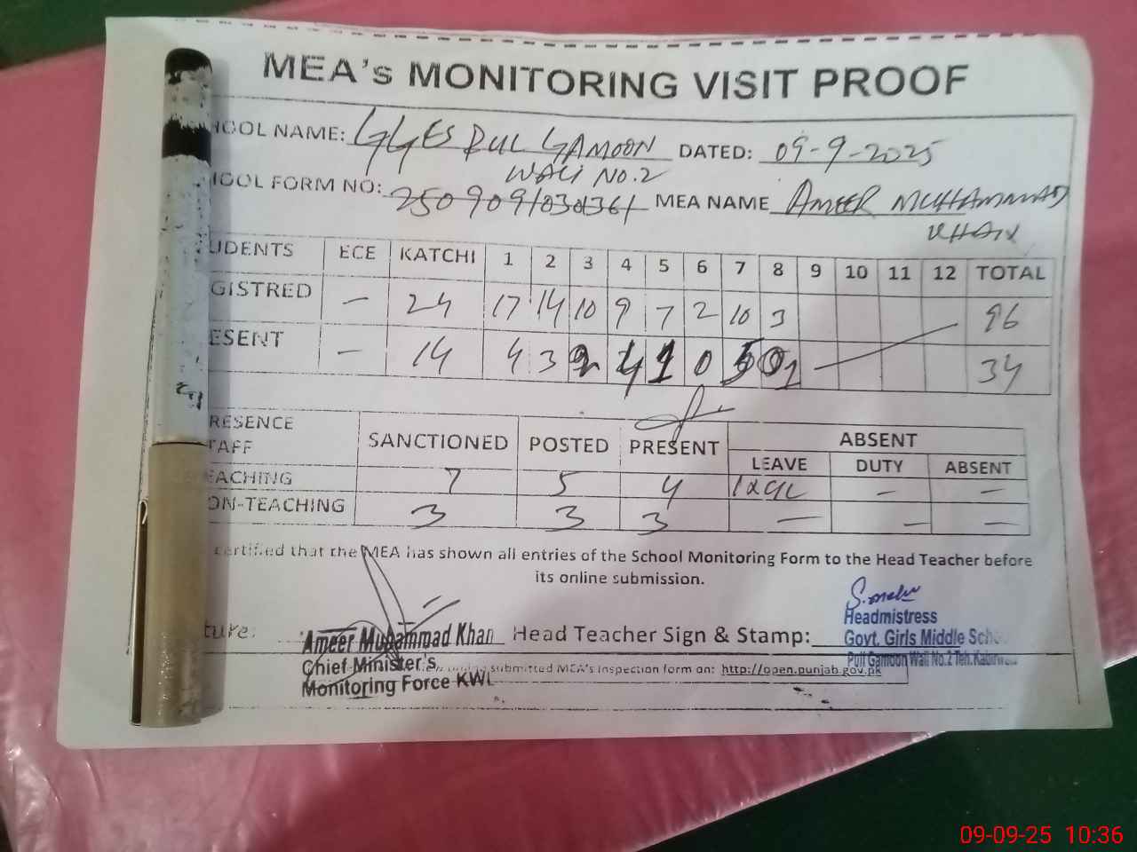 | EMIS Code: 36410633 | Name of School: GGES PUL GAMOON WALI NO. 2 | |||