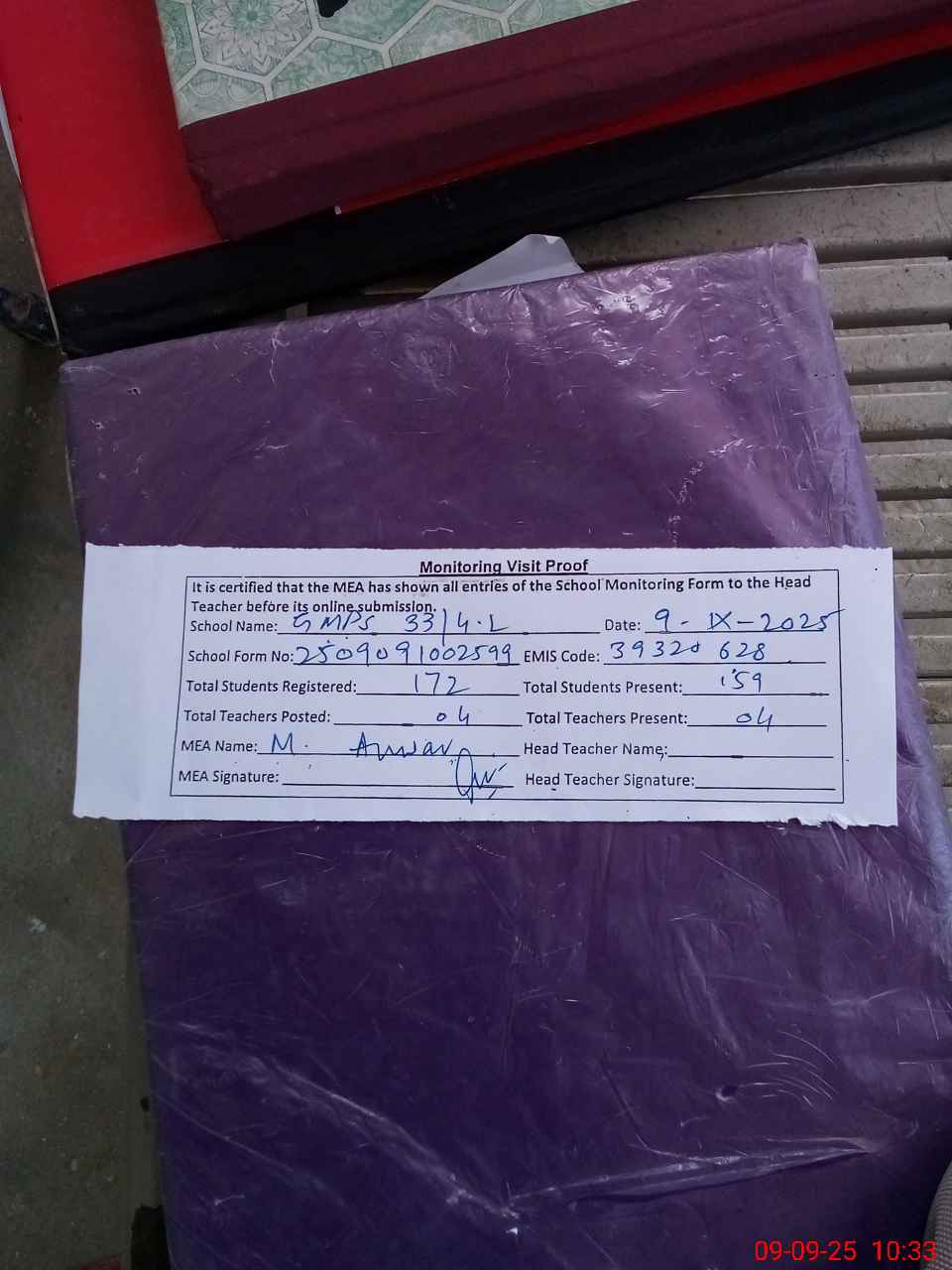 | EMIS Code: 39320628 | Name of School: GMPS CHAK NO. 33/4-L | |||